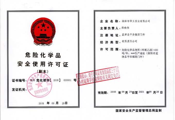 危險化學(xué)品安全使用許可證