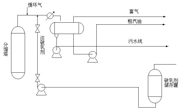 。、破乳劑直接用隔膜泵或往復(fù)泵打入塔頂油氣線。